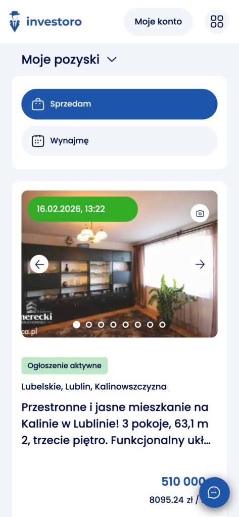 Inwestoro pomaga mi w ustaleniu ceny za jaką mogę puścić mieszkanie i śledzić co aktualnie daje rynek.